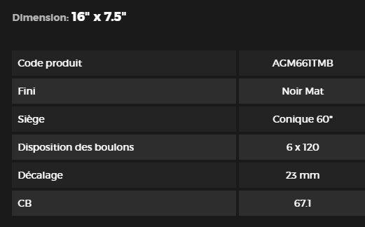 Jantes de 16'' noir mat #AGM661TMB-1 conçues pour rehausser l'esthétique de votre véhicule avec une finition noir mat élégante et durable. Ces roues allient style contemporain et performance optimale, offrant une solution parfaite pour personnaliser votre automobile tout en garantissant fiabilité et résistance sur la route.